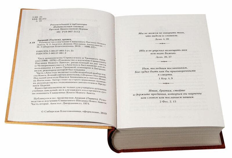 Данное толкование на Апостол включает в себя подробный разбор текста Книги Деяний святых апостолов, соборных Посланий, Посланий апостола Павла и Апокалипсиса святого Иоанна Богослова. Автор стоит на строго церковных позициях, руководствуясь толкованиями святых отцов и Преданием Церкви. Книга написана простым и понятным языком, что облегчает понимание самых сложных мест Священного Писания. Этот труд архиепископа Аверкия (Таушева) относится к числу классических толкований на Апостол. Книга предназначена не только для учащихся духовных учебных заведений, но и для каждого, кто стремится лучше понимать Священные Книги Нового Завета. Текст отпечатан на качественной белой бумаге удобным для чтения шрифтом. Рекомендовано к публикации Издательским Советом Русской Православной Церкви.
