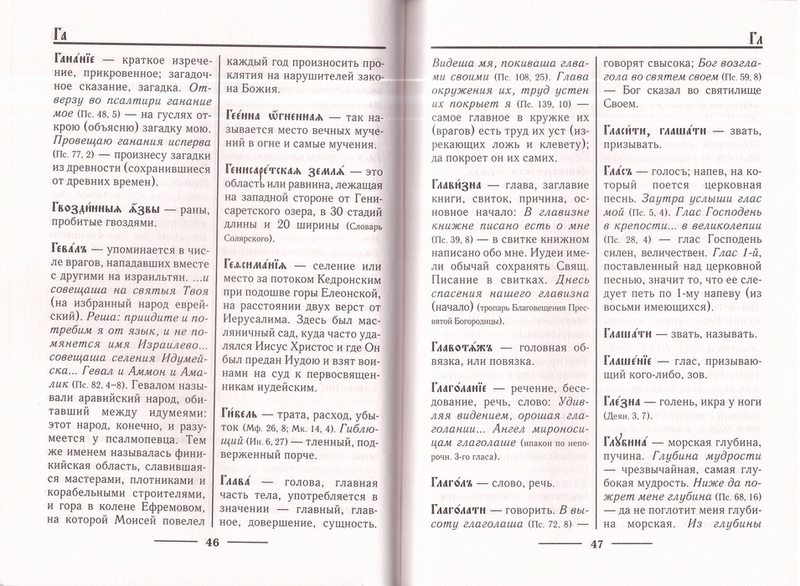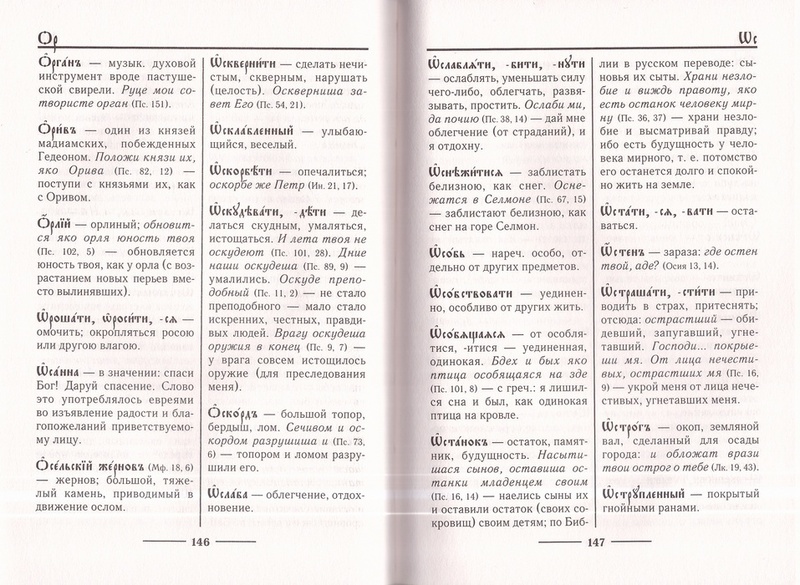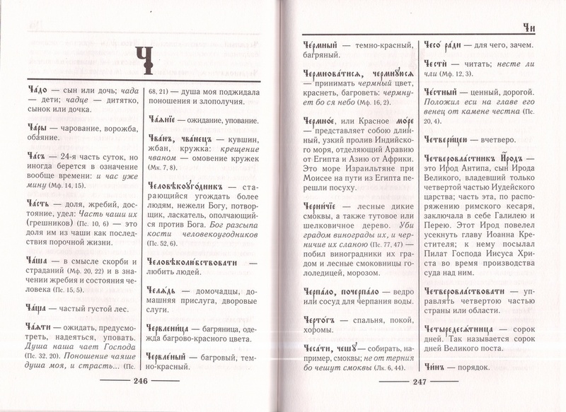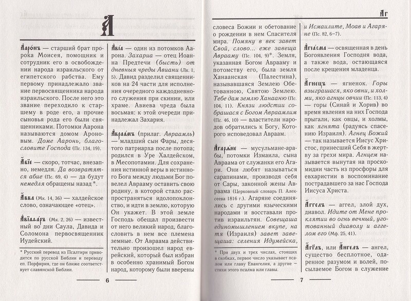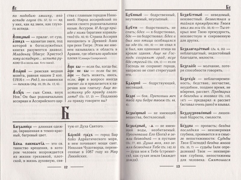 Словарь предназначен для толкового чтения Евангелия, Часослова, Псалтири и учебного Октоиха и используется в качестве учебного пособия для чтения обозначенных книг при обучении церковнославянскому языку. Попутно автор сообщает исторические и географические сведения о событиях, предметах и лицах священной и церковной истории. Настоящее издание снабжено указателем цитируемых стихов из Псалтири и небольшим пособием для чтения церковнославянского текста современных священных и богослужебных книг и молитвословий.