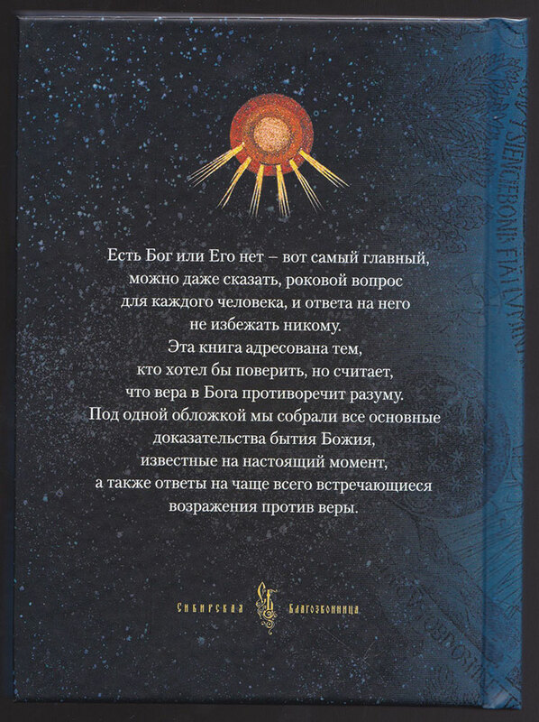 В книге собраны все основные научные доказательства бытия Божия, известные в настоящее время, а также ответы на чаще всего встречающиеся возражения против веры. Есть Бог или Его нет — это самый главный вопрос для каждого человека, и ответа на него не избежать никому. Эта книжка адресована тем, кто хотел бы поверить, но считает, что вера в Бога противоречит разуму. Издание будет полезно также миссионерам, катехизаторам и другим людям, которые хотят использовать убедительные аргументы и научно обоснованные факты, способные убедить неверующих и иноверцев и обратить их ко Христу. Текст отпечатан на белой офсетной бумаге.