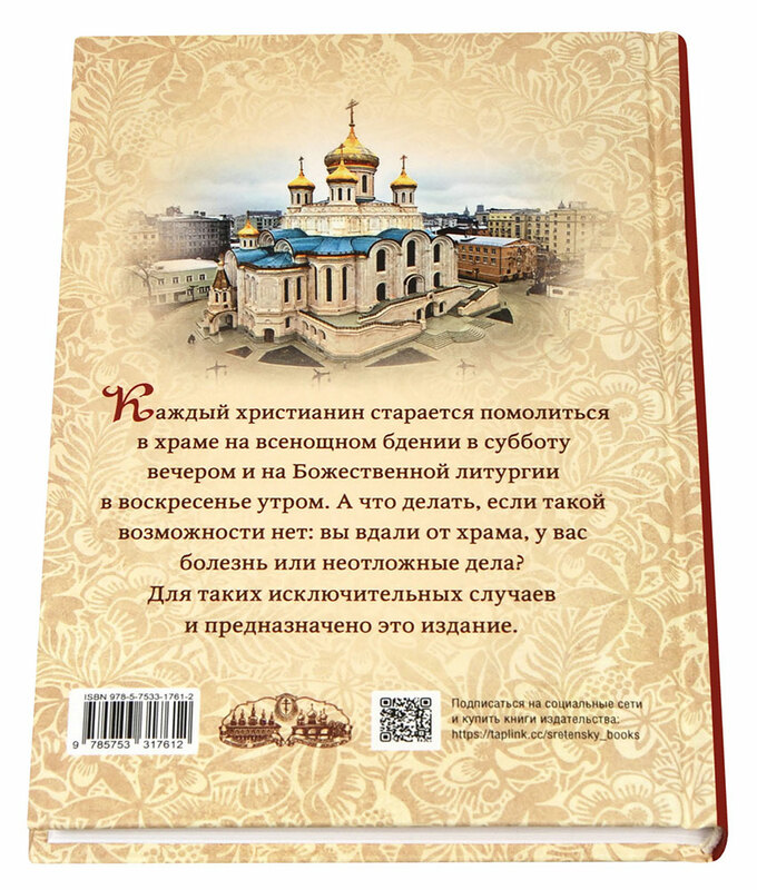Молитва на субботнем всенощном бдении и воскресной Божественной литургии – важная обязанность каждого христианина. В книге читатель найдет последование (текст) воскресного всенощного бдения 6-го гласа, часы и изобразительны (обедницу), адаптированные для домашней молитвы. В приложении даны воскресные евангельские чтения на утрени, чтения на воскресной обеднице из Евангелия и Апостола с русским переводом, прокимны и аллилуарии, сопровождающие чтения из Священного Писания. В конце книги приводится краткий словарь. Книга предназначена для тех, кто не имеет возможности посетить храм в выходные дни, например, если человек находится вдали от храма, болеет или работает. Текст отпечатан на белой бумаге высокого качества удобным для чтения шрифтом.