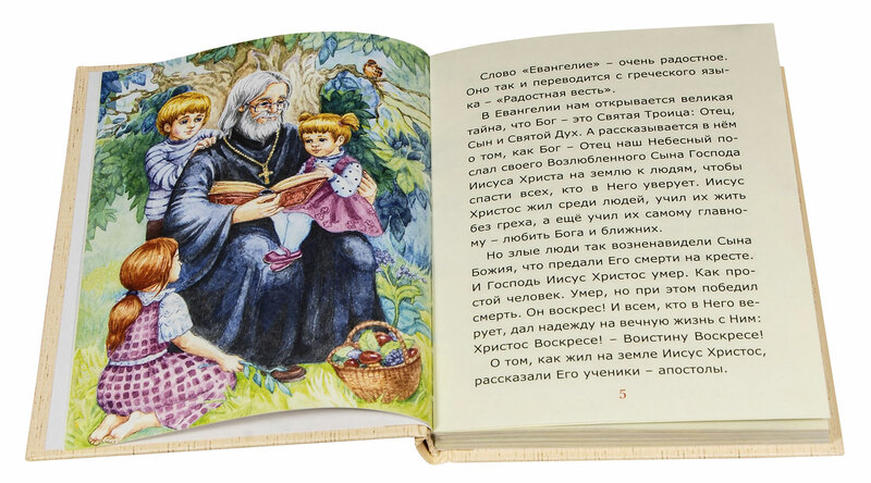Красочное иллюстрированное издание, содержащее доступный детям рассказ об основных Евангельских событиях и важнейших притчах. Прочитав книгу самостоятельно или с родителями, малыш познакомится с событиями из жизни Спасителя нашего Господа Иисуса Христа, узнает о Пресвятой Богородице, святых апостолах, об Иоанне Крестителе. Слово Божие проникнет в детскую душу, а яркие цветные иллюстрации помогут лучше запомнить прочитанное. «Евангелие» в переводе с греческого означает «Благая весть». О чем же эта весть? Она о том, как Бог полюбил мир настолько, что даже отдал Своего Единственного Сына, чтобы каждый верующий в Него не погиб, а жил вечно. Издание отпечатано на цветной бумаге и предназначено для детей дошкольного и младшего школьного возраста.