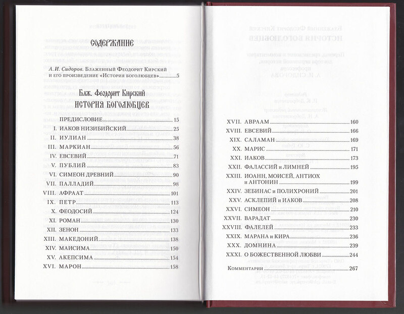Это творение блаженного Феодорита Кирского представляет собой ценнейший памятник древней церковной литературы, созданный в середине V века. Его можно назвать Древнесирийским патериком, ибо произведение посвящено достоверным рассказам о житиях святых сирийских подвижников IV–V веков, стоявших у истоков современного православного монашества. Эти рассказы поражают яркостью изображения — мы видим живых людей. Одних автор знал лично, о других передает со слов очевидцев. Не вдаваясь в подробности их внешней жизни, блаженный Феодорит старается показать особенные образцы подвижничества, достойные удивления и подражания, чудеса, которые совершались по молитвам этих людей. Главное движущее начало жизни древних «поклонников истинной мудрости», их способность «простираться далее пределов естества», блаженный Феодорит находит в их пламенной любви к Богу. В данном издании представлен прекрасный перевод этого сочинения, снабженный комментариями, выполненными профессором МДА, доктором церковной истории А.И. Сидоровым. Книга содержит в себе духовную мудрость и подвижнический опыт древних святых. Текст отпечатан на качественной белой бумаге удобным для чтения шрифтом.