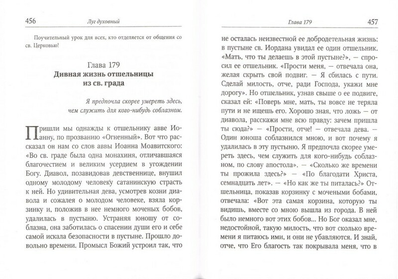 Увлекательная и поучительная книга, описывающая подвиги великих монахов-аскетов VI–VII столетий, которые во все века остаются образцом христианского подвижничества. «Луг духовный» принадлежит к числу самых популярных на Руси агиографических творений. Помимо описания различных событий, в 219 главах данного творения приводятся душеспасительные и назидательные размышления и наставления древних подвижников. Византийский духовный писатель, блаженный Иоанн Мосх, в конце 6-го столетия вместе со своим учеником Софронием совершил путешествие по монастырям Ближнего востока. Обойдя почти все знаменитые палестинские и сирийские обители, они посетили Египет, проникли на юг до Фиваиды и Оазиса, везде присматриваясь к подвижнической жизни и с любовью её изучая. Собранные ими сведения и составили эту книгу. «Луг Духовный» свидетельствует об истинности Православия и подает примеры любви подвижников к Богу, жизни по заповедям евангельским. Издание рассчитано на широкий круг православных читателей и отпечатано на белой офсетной бумаге высокого качества.