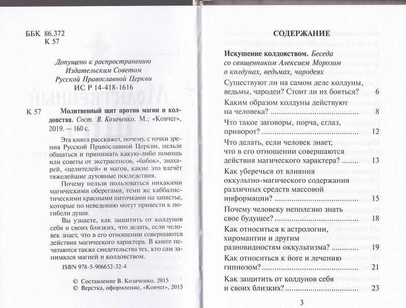 Книга, основываясь на учении Православной Церкви, рассказывает о том, почему нельзя принимать какую-либо помощь или советы от экстрасенсов, «бабок», знахарей, «целителей» и магов, какие это влечёт тяжелейшие духовные последствия. Вы узнаете, почему нельзя обращаться за помощью к таким людям и пользоваться разными магическими «оберегами». Всё это по неведению может привести к погибели души. Разъясняется, как защитить от колдунов себя и своих близких, что делать, если человек знает, что в отношении него совершаются действия магического характера. Приводятся свидетельства тех, кто сам занимался магией и колдовством. В книгу включены также псалмы и молитвы, которые необходимо читать для защиты от злых чар, врагов видимых и невидимых. Текст снабжен иллюстрациями.