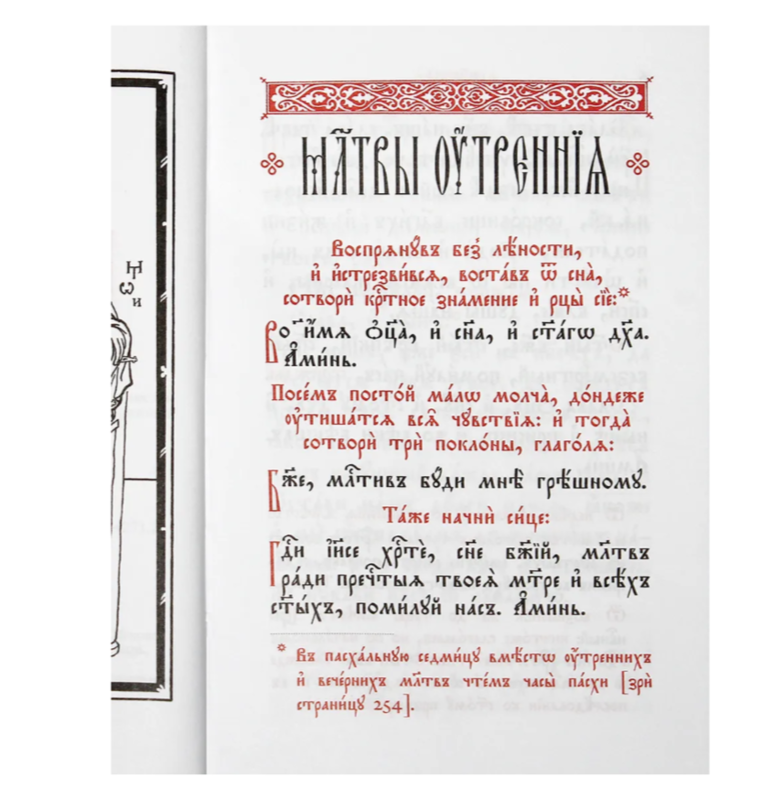 Книга содержит: Молитвы утренние; Молитвы на сон грядущим; Каноны ко святому Причащению; Акафист Сладчайшему Господу нашему Иисусу Христу; Акафист Пресвятой Владычице нашей Богородице; Акафист святителю Николаю Чудотворцу; Последование ко святому Причащению; Благодарственные молитвы по святом Причащении; Канон святой Пасхи; Стихиры святой Пасхи; Часы святой Пасхи; Задостойники двунадесятых праздников; Молитвы перед началом чтения Псалтири; Псалтирь пророка и царя Давида (кафизмы 1–20); Молитвы по прочтении нескольких кафизм или всей Псалтири; Правила чтения Псалтири по усопшим. Текст отпечатан на качественной белой бумаге крупным черным и красным шрифтом.