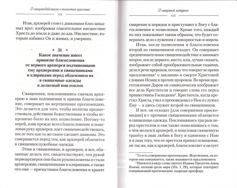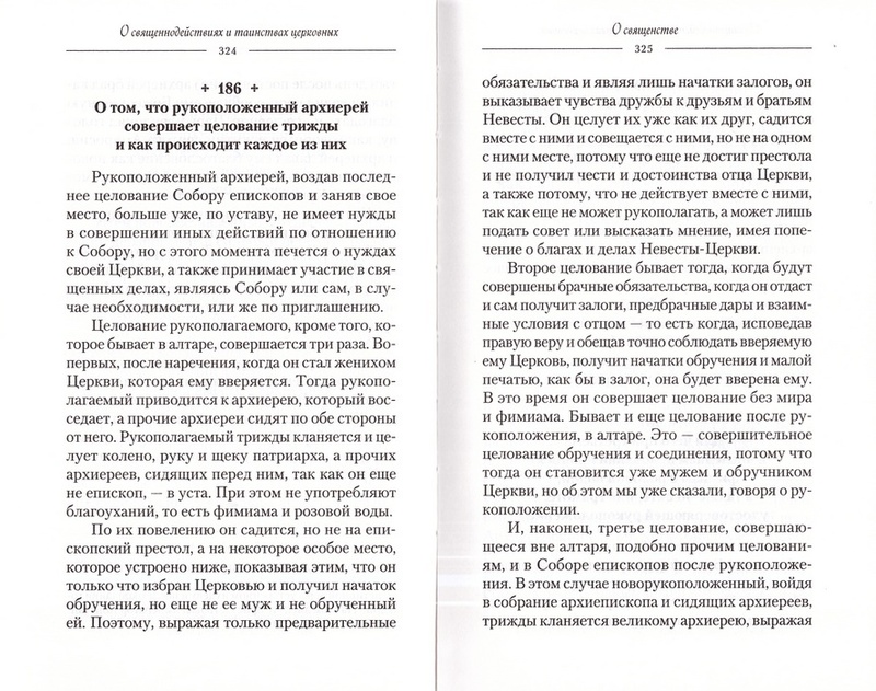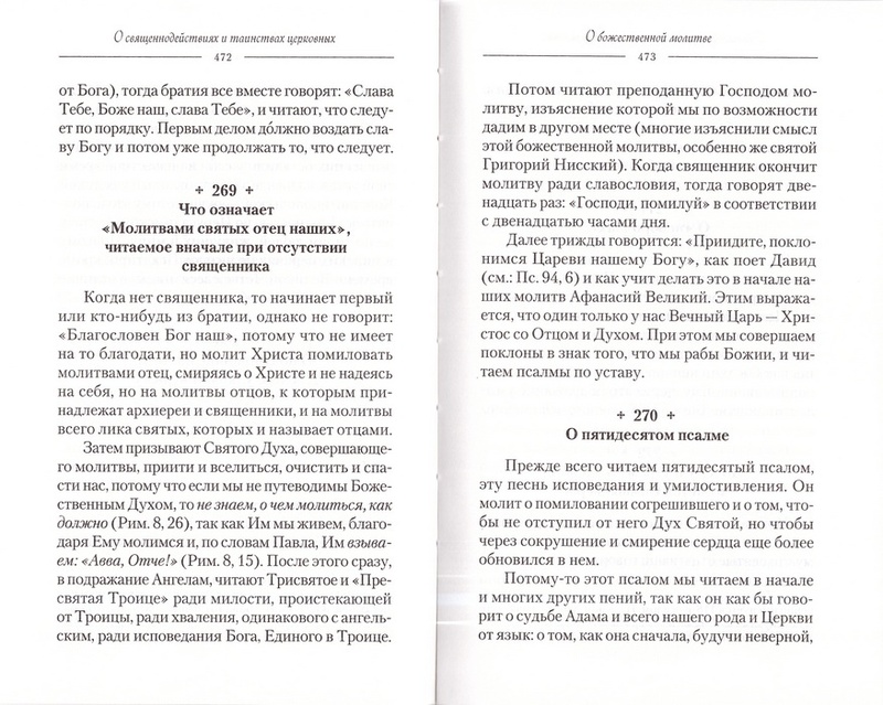 Книга святителя Симеона Солунского, выдающегося византийского богослова и знатока богослужения, – одно из авторитетнейших произведений по данной тематике. Святитель разъясняет смысл, символику и порядок совершения Таинств Церкви, рассуждает о храме Божием и правилах благочинного поведения в нем. Святой Симеон касается также вопросов священнослужения и молитвы, разъясняя их и толкуя богослужение с мистической, символической и исторической точек зрения. В книге приводятся основные наставления о священнодействиях и семи Таинствах, а также детально рассматриваются следующие вопросы: о крещении и миропомазании, о священной литургии, о святом храме и о его освящении, о священстве, о покаянии, о пострижении в монашество, о честном законном браке, о священном таинстве святого елея (елеосвящении), о божественной молитве, о кончине человека, священном чине погребения и совершаемых по обычаю поминовениях. Даются практические советы и рекомендации. Святитель Симеон Солунский был последним архиепископом Фессалоник до захвата их турками. Уже через шесть месяцев после смерти святителя Фессалоники пали и храм святой Софии был превращен в мечеть. Однако пока был жив святитель Симеон, город был верен своему императору и Православию. Книга будет полезна не только священно- и церковнослужителям, но и благочестивым мирянам, интересующимся историей Церкви и богослужения, правилам поведения в храме. Текст отпечатан на плотной белой бумаге отличного качества.