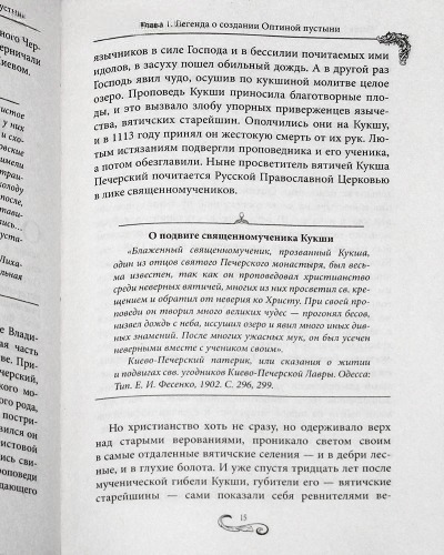 Книга с цветными иллюстрациями рассказывает об Оптиной пустыни – знаменитой на весь мир духовной обители с долгой и необычной историей. Упорно возрождалась она после многих трудностей и разорений и расцветала еще ярче. В наши дни сюда стремятся тысячи паломников со всего света. Каждый наслышан о чудесах и мудрости Оптинских старцев. Эта книга поведает о прекрасной обители, ее богатой и трудной истории, а также великом и неувядающем наследии. «Наша святая обитель привлекает к себе многих богомольцев, и часто слышится такое мнение, что, побывав раз в Оптиной, стремятся туда всей душой… Вся земля здесь как бы полита кровью и потом святых старцев и молитвами их низводит благодать на души верующих. Нигде в другом месте этого нет» – так говорил преподобный Варсонофий Оптинский.