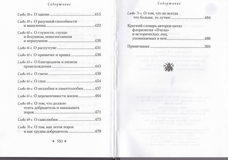 «Пчела», или Главы поучительные из Писания, святых отцов мудрых мужей