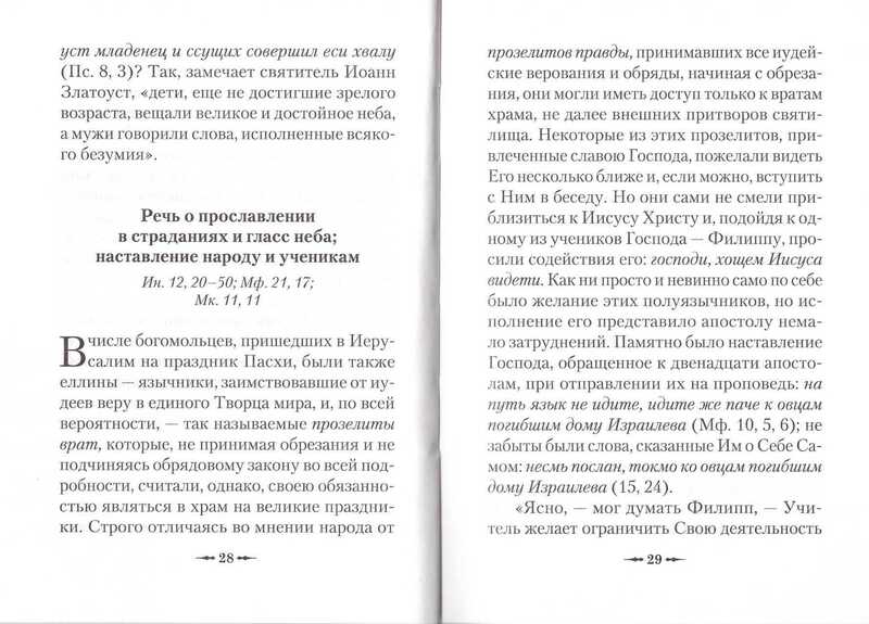 В книге рассказывается о последних днях земной жизни Господа Иисуса Христа. Основой повествования послужил труд протоиерея Павла Алексеевича Матвеевского (1828–1900) — духовного писателя, магистра Санкт-Петербургской духовной академии. Он, в свою очередь, опирался на толкования и иные творения святых отцов, в частности, святителя Феофана Затворника. Три с половиной года служения Господа нашего Иисуса Христа спасению человеческого рода приближались к концу. Непрестанною проповедью Евангелия и бесчисленными явлениями всемогущей силы в чудотворениях Спаситель утвердил веру в Своих учениках и последователях. Наступала Пасха, единственная в бытописании человечества, когда истинная Пасха наша — Христос… Текст отпечатан на белой офсетной бумаге удобным для чтения шрифтом. Книга рекомендована к публикации Издательским Советом Русской Православной Церкви.