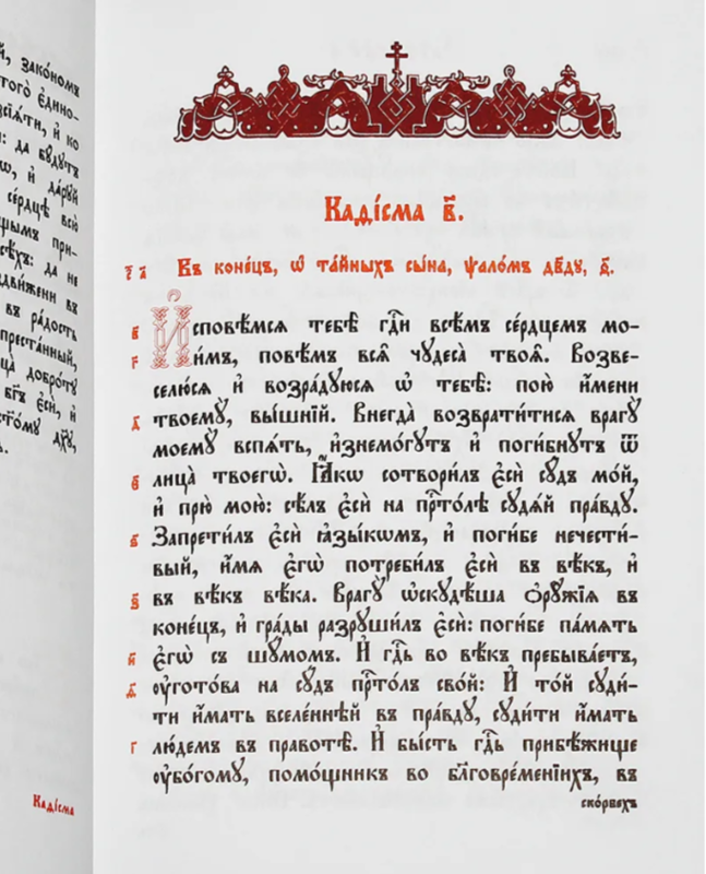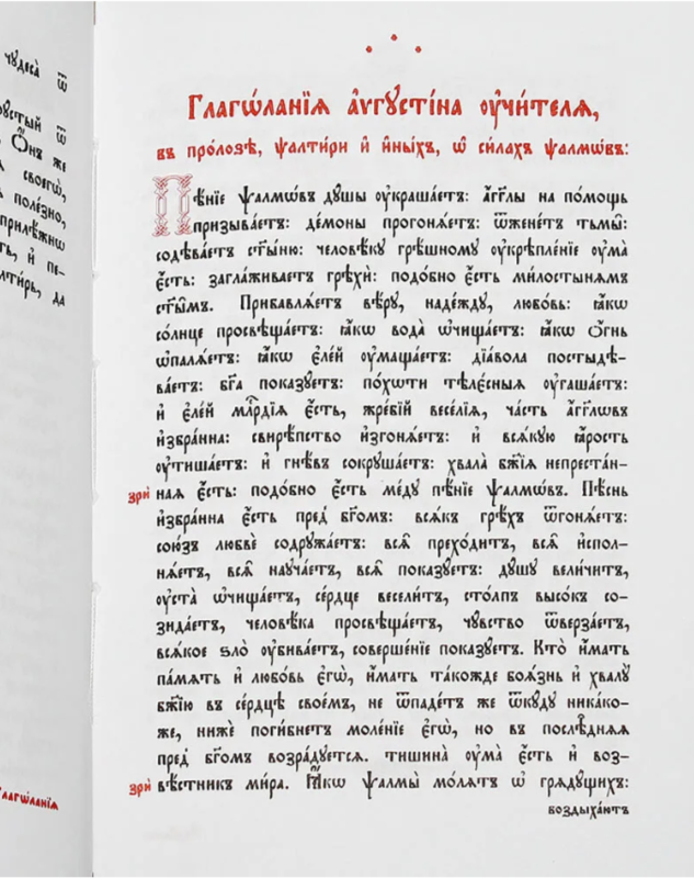 Настоящее издание Псалтири пророка и царя Давида на церковнославянском языке содержит поучения святых отцов о чтении Псалтири; молитвы перед началом ее чтения; кафизмы 1–20 с тропарями и молитвами по кафизмам; молитвы по прочтении нескольких кафизм или всей Псалтири и песен; песни Священного Писания, помянник, чин пения двенадцати избранных псалмов, правило святого Пахомия Великого, данное ему Ангелом Господним, последование по исходе души от тела. Текст отпечатан на качественной белой бумаге черным и красным шрифтом.