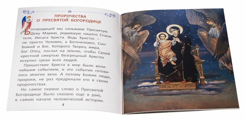 Красочно иллюстрированное издание в доступной форме расскажет малышам о Рождестве Пресвятой Богородицы, Введении Ее во храм, Благовещении, Рождестве Христовом, дальнейшей жизни Божией Матери, Ее Успении, Покрове Царицы Небесной над Россией, Ее чудотворных иконах, а также о многом другом. Яркие цветные иллюстрации помогут лучше запомнить прочитанное. Книжка предназначена для детей дошкольного и младшего школьного возраста, отпечатана на плотной белой бумаге, печать полноцветная.