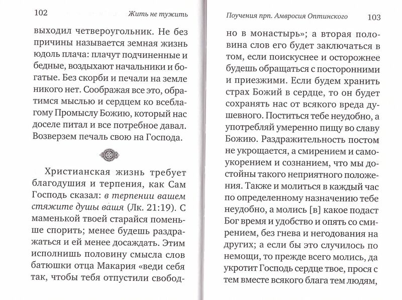 В этой книге собраны поучения преподобного Амвросия Оптинского. Его духовные советы и изречения записывались духовными чадами великого старца. Эти небольшие рассказы и притчи передаются христианами из уст в уста, приносят несомненное утешение и пользу, дают мудрое наставление. Старец Амвросий обладал необыкновенно живым, острым и проницательным умом, просветленным постоянной сосредоточенной молитвой, вниманием к себе и знанием подвижнической литературы. По благодати Божией его проницательность переходила в прозорливость: он глубоко проникал в душу собеседника и читал в ней, как в раскрытой книге. Отец Амвросий, несмотря на постоянную болезнь, проявлял неиссякаемую жизнерадостность и умел давать свои наставления в такой простой и шутливой форме, что они легко и навсегда запоминались каждым слушающим. Книга издана в удобном карманном формате, отпечатана на белой офсетной бумаге.